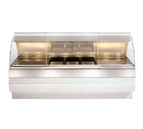 HMR-107 Heated Merchandiser, 7-well self-service area (26-3/4 in. front-to-back length by 94-1/4 in. width), lockable electronic controls for radiant heat above each "well" and for lower heat, halogen lamps, removable sliding rear doors with mirrored glass, plastic cutting board, includes: sneeze guard (only with USA and Canadian units), cULus, UL EPH, CE