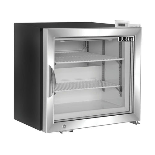 Freezer Merchandiser, countertop, 1-section, 1-7/10 cu. ft., 22-2/5"W x 21"D x 21"H, triple pane right hinged glass door (locking), (2) removable shelves, digital display & controls, LED interior light, automatic defrosting, temperature range: -3° to 0°F, bottom mount self-contained refrigeration system, adjustable feet, ABS plastic interior, black painted steel exterior, 1/16 HP, 115v/60/1-ph, 2 amp, 341 BTU, NEMA 5-15P, UL, UL EPH