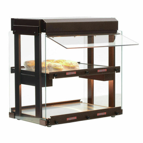 Glo-Ray® Mini Heated Merchandiser, countertop, 22-29/32" x 21-29/32" x 23-1/2"H, thermostatic controlled base, acrylic breath protector, infrared top heat, steel, powder coat, espresso, 1300 watts, 120V/60/1-ph, 11.1 amps, NEMA 5-15P, UL EPH Classified