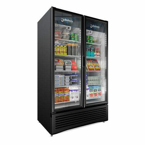 (1011878) Refrigerated Merchandiser, two-section, (10) flat shelves, black painted steel exterior, white interior, (2) hinged glass doors, LED interior lighting, electronic temperature controller & fan motors, bottom mounted self-contained refrigeration, 1/2 HP, 115v/60/1-ph, 10.0 amps, cULus, NSF, UL EPH Classified, ENERGY STAR®