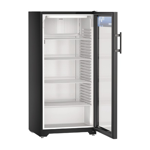 Refrigerator Merchandiser, reach-in, one-section, 24-7/8"W, bottom mount self-contained refrigeration, 9.9 cu. ft. capacity, (1) reversible right hinged glass door, (4) adjustable plastic coated shelves, analogue controls, auto defrost, LED interior lighting, plastic white interior, black steel exterior, adjustable feet, R290 Hydrocarbon refrigerant, 115v/60/1-ph, 4.0 amps, NSF, cCSAus
