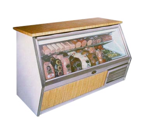 Counter High Merchandiser, 72" L, triple pane glass front, deck, (1) mezzanine shelf, white aluminum interior, mirror stainless steel trim, laminate exterior front & top, self-contained refrigeration with condensate evaporator, gravity coil, 1/3hp, NSF 7