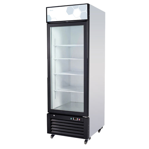 Competitor Series® Refrigerator Merchandiser, reach-in, one-section, 27" W, 23.0 cu. ft. capacity, bottom mount self-contained refrigeration system, (1) dual pane hinged glass door (locking), (4) shelves, LED interior lighting, illuminated canopy, digital temperature controller/display (+33° to +41°F), forced air cooling, auto defrost, white powder coated steel exterior & interior, 3" casters, R290 Hydrocarbon refrigerant, 3/8 HP, 115v/60/1-ph, 6.1 amps, NEMA 5-15P, cETLus, ETL-Sanitation, ENERGY STAR®, Migali® Plant-A-Tree Pledge: Migali® pledges to plant a tree for every product sold in partnership with the Earth Day Network