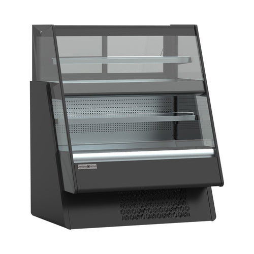 Hydra-Kool Grab-N-Go Open Over-Under Merchandiser, self contained refrigeration, 48"W x 37-33/64"D x 59-1/4"H, upper section (1) shelf & deck (can be operated in refrigerated or ambient mode), lower section (1) adjustable shelf & deck, LED lighting in canopy & under all shelves, digital temperature controller, PVC coated grey steel interior, silver front panel & grey bottom front panel on exterior, adjustable feet, ETL-Sanitation, cETLus