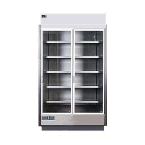 (SPECIAL ORDER) Hydra-Kool High Volume Refrigerated Merchandiser, reach-in, multiplexable, 51-1/2"W x 32-5/8"D x 87-7/8"H, 37.63 cu. ft., (2) hinged glass front doors, retractable night curtain, PVC coated gray steel interior with (5) adjustable shelves, 32°-40°F temperature range, digital controller, LED lighting in canopy & under each shelf, PVC coated silver steel front panel, gray kick plate, self-contained refrigeration, adjustable feet, 5/8 HP, ETL-Sanitation, cETLus