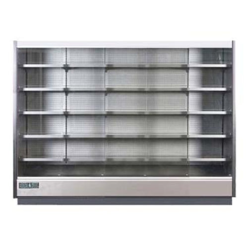(SPECIAL ORDER) Hydra-Kool High Volume Refrigerated Open Merchandiser, multiplexable, retractable night curtain, 123-1/8"W x 31"D x 77-3/4"H, PVC coated gray steel interior with (5) adjustable shelves, 32°-40°F temperature range, digital controller, LED lighting in canopy & under each shelf, PVC coated silver steel front panel, gray kick plate, designed for remote refrigeration, adjustable feet, ETL-Sanitation, cETLus