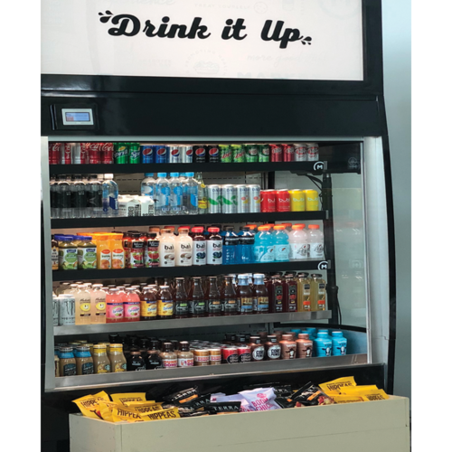 Olympus V Turbo Chill Market Express Open Merchandiser, 60"W x 31-7/8"D x 78-1/2"H, self-contained refrigeration, motorized roll down locking security cover, (4) adjustable stainless shelves with LED lights, Smart Controller food product simulator probe & safety sensor, cleaning indicator lights, LED canopy light, removable deck pan, includes header bracket, built-in condensate evaporator, lift out black louvered air grill, solid end panels, stainless steel interior ends & back panel, laminate exterior, R404A refrigerant, 1-1/4 HP, cETLus, ETL-Sanitation