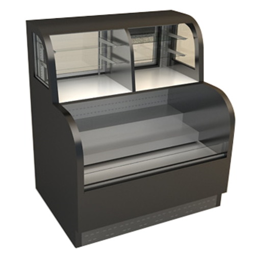 Continental Refrigerated/Dry Bakery Case, 48" L, self-service refrigeration base section with stainless steel deck, refrigeration & non-refrigeration upper sections with (2) glass shelves, service type, fixed curved glass front, top canopy LED light, interior with mirrored rear sliding doors & ends, laminated exterior, black base, condensate evaporator, 1/2 hp, cETLus, ETL-Sanitation, NSF