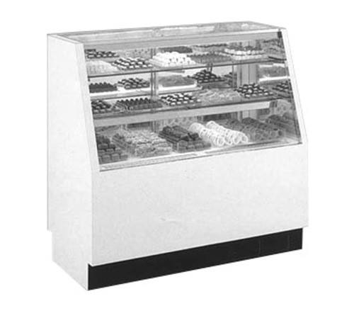 Monarch Dry Candy Case, 96" L, non-refrigerated, service type, fixed straight glass front, top canopy LED light, (2) glass shelves, white deck, mirrored laminate interior ends with glass vision end panels, mirrored rear sliding doors, laminated exterior, black base, cETLus, ETL-Sanitation, NSF
