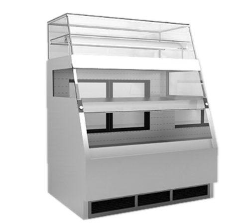 Manhattan Display Case, 48" W, self-contained refrigeration, top canopy LED light, (1) stainless steel shelf with LED light, electronic control, defrost termination, stainless steel deck & perforated back panel, stainless steel interior ends, removable sliding doors (upper section) sliding rear doors (lower section), 1/2 hp, cETLus, ETL-Sanitation, NSF