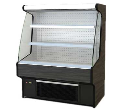 Bandit Air Screen Display Case, 48" W x 60" H, self-contained refrigeration, lift out black louvered air grill, electronic display control, defrost termination, digital temperature display, top canopy LED light, (2) extra deep stainless steel shelves, stainless steel deck & perforated back panel, brushed aluminum interior ends, laminated exterior with T-mold edge, front air intake - top air discharge, floor drain required, 3/4 hp, 115/208-230v, 11.5 amps, NEMA L14-30P, cETLus, ETL-Sanitation, NSF