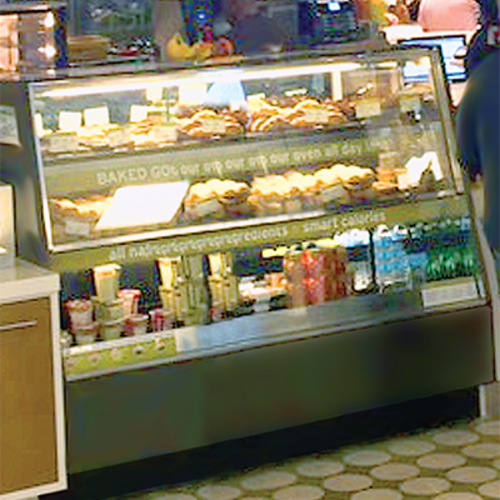 Manhattan MSAR Display Case, 72"W, self-contained refrigeration with ambient top, full service top, grab & go bottom, (1) tempered glass shelf (top & mid), rear sliding doors, electronic control with digital display, defrost termination, LED lighting, removable deck pan, stainless steel interior ends, vision end panels, laminate exterior finish, 3/4 HP, cETLus, ETL-Sanitation (Floor drain required)