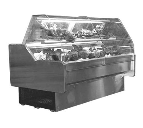 Express Annapolis II Euro Deli Case, 63-1/8" L, self-contained refrigeration, service type with lift-up curved glass front, top canopy LED light, non-refrigeration glass mezzanine shelf with LED lights, stainless steel deck, back & noser panel, brushed aluminum interior ends with plexiglass vision panels, laminated exterior, black base, rear work deck with Zip Lite cutting board, condensate evaporator, 1/3 hp, cETLus, ETL-Sanitation, NSF