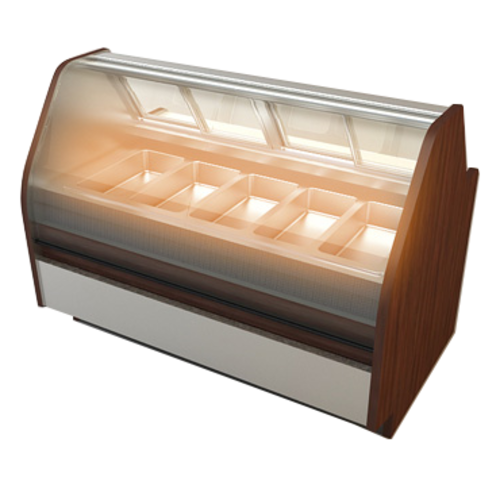 Express Annapolis Euro Hot Deli Case, 75-1/4" L, (5) wells with drains & manifold, service type with lift-up curved glass front, top canopy light, stainless steel deck, back & noser panel, solid ends with brush aluminum interior, laminated exterior, black base, rear work deck with Zip Lite cutting board, cETLus, ETL-Sanitation, NSF