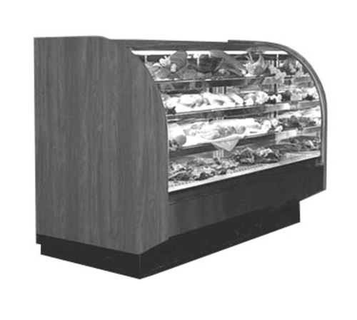 Express Deli Case, 45-7/8" L, self-contained refrigeration, service type with curved glass front, top canopy LED light, (2) stainless steel shelves with LED lights, stainless steel deck pan, brushed aluminum interior with plexiglass vision end panels, laminated exterior, black base, condensate evaporator, 1/3 hp, cETLus, ETL-Sanitation, NSF