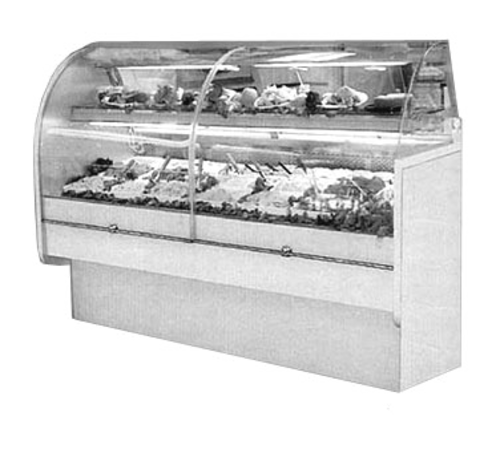 Express Monaco II Euro Deli Case, 91-3/4" L, self-contained refrigeration, service type with lift-up curved glass front, top canopy LED light, non-refrigerated glass mezzanine shelf with LED light, stainless steel deck, back & noser panel, brushed aluminum interior ends with plexiglass vision panels, laminated exterior, black base, rear work deck with Zip Lite cutting board, 1/2 hp, cETLus, ETL-Sanitation, NSF