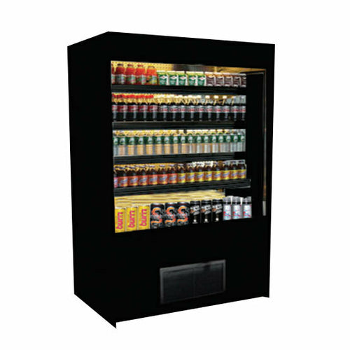 Refcon™ SWIN Series Open Merchandiser, 72"W, bottom mount self-contained refrigeration, (4) adjustable black shelves, LED top canopy light, (2) vertical mounted LED lights, digital temperature display, electronic digital control & defrost termination, condensate evaporator (no drain required), metal frame, black interior & exterior, 1-1/4 HP, 115/208-230v/60/1-ph, 13.2 amps, cord, NEMA L14-20P, cETLus, ETL-Sanitation