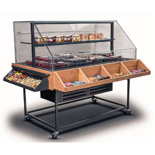Vienna Series Papilio Cold Self-Serve Grab & Go Merchandiser, mobile, 51-7/8"W, self-contained refrigeration, (1) non-refrigerated tempered glass shelf, removable deck pans, programmable digital controller, hot gas evaporation system, frameless insulated glass ends, tempered glass top & air dam front, lift up evaporator, air cooled system with variable speed fan, lift up evaporator, stainless steel interior & exterior, locking casters, 1/2 HP, cETLus, ETL-Sanitation