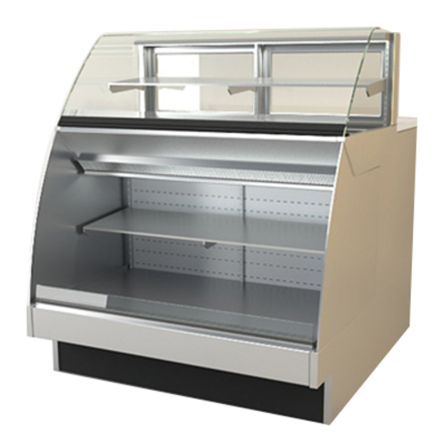 Vienna Cold Combo Display Case, 47-1/4" W, self-contained refrigeration, full service, programmable digital refrigeration controller, top canopy LED light, forced air cooling, lift up evaporator, tempered tilt-out front curved glass with glass side panels (upper) section, (1) refrigeration shelf with LED light, stainless steel exterior, rear sliding access door (upper section) & cutting board, 3/4 hp, cETLus, ETL-Sanitation, NSF