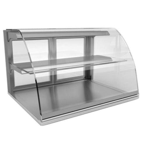 Vienna Dry Countertop Display, 31-1/2" W, full service, tempered tilt-open curved front glass, removable tempered side glass panels, top canopy LED light, (1) adjustable tempered glass shelf with LED light, stainless steel exterior, hinged rear see-thru access doors, cETLus, ETL-Sanitation, NSF