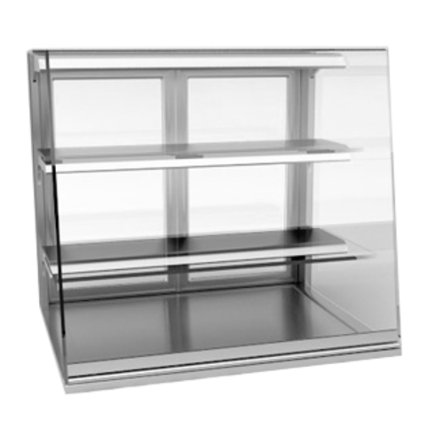 Vienna Dry Countertop Display, 31-1/2" W, full service, slanted tilt-out front glass, removable tempered glass side panels, top canopy LED light, (2) adjustable tempered glass shelves with LED lights, stainless steel exterior, hinged rear see-thru access doors, cETLus, ETL-Sanitation, NSF