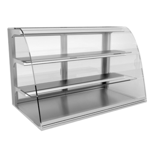 Vienna Dry Countertop Display, 44-1/4" W, full service, tempered tilt-open curved front glass, removable tempered side glass panels, top canopy LED light, (2) adjustable tempered glass shelves with LED light, stainless steel exterior, hinged rear see-thru access doors, cETLus, ETL-Sanitation, NSF