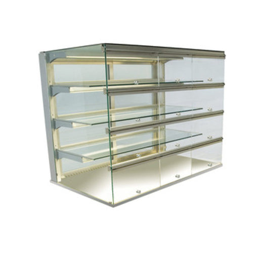 Vienna Dry Countertop Display, 44-1/4"W, self-service, tempered squared glass profile with front flip-up doors, (3) adjustable shelves, LED lights, hinged see-through rear access doors, stainless steel interior & exterior, cETLus, ETL-Sanitation, NSF