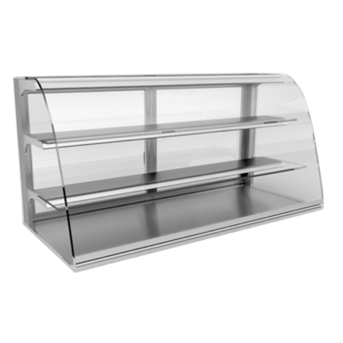 Vienna Dry Countertop Display, 57-1/8" W, full service, tempered tilt-open curved front glass, removable tempered side glass panels, top canopy LED light, (2) adjustable tempered glass shelves with LED light, stainless steel exterior, hinged rear see-thru access doors, cETLus, ETL-Sanitation, NSF