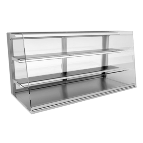 Vienna Dry Countertop Display, 57-1/8" W, full service, slanted tilt-out front glass, removable tempered glass side panels, top canopy LED light, (2) adjustable tempered glass shelves with LED lights, stainless steel exterior, hinged rear see-thru access doors, cETLus, ETL-Sanitation, NSF