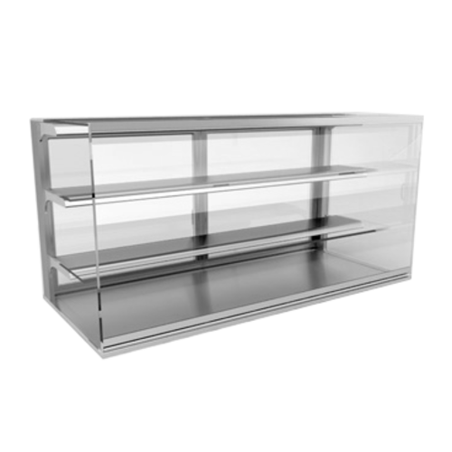 Vienna Dry Countertop Display, 57-1/8" W, full service, squared tilt-out front glass, removable tempered glass side panels, top canopy LED light, (2) adjustable tempered glass shelves with LED lights, stainless steel exterior, hinged rear see-thru access doors, cETLus, ETL-Sanitation, NSF