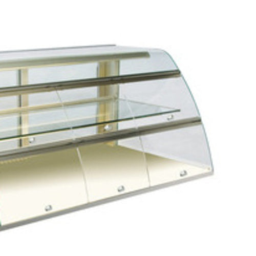 Vienna Dry Countertop Display, 69-7/8"W, self-service, tempered curved glass profile with front flip-up doors, (1) adjustable shelf, LED lights, hinged see-through rear access doors, stainless steel interior & exterior, cETLus, ETL-Sanitation, NSF