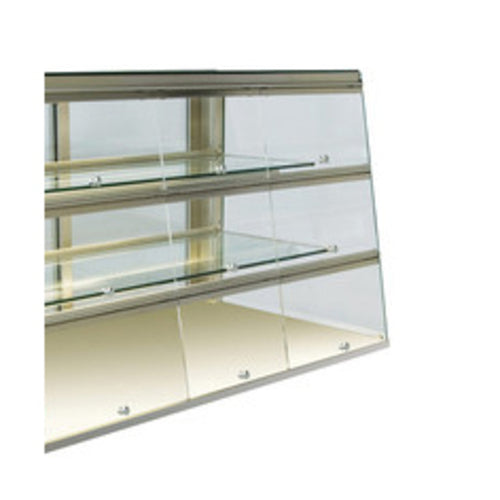 Vienna Dry Countertop Display, 69-7/8"W, self-service, tempered slanted glass profile with front flip-up doors, (2) adjustable shelves, LED lights, hinged see-through rear access doors, stainless steel interior & exterior, cETLus, ETL-Sanitation, NSF