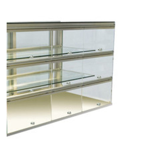 Vienna Dry Countertop Display, 69-7/8"W, self-service, tempered squared glass profile with front flip-up doors, (2) adjustable shelves, LED lights, hinged see-through rear access doors, stainless steel interior & exterior, cETLus, ETL-Sanitation, NSF