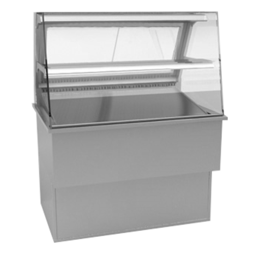 Vienna Select Series Cold Display, 35-7/8"W, slide-in, self-contained refrigeration, lift up evaporator, slide-out condensing unit, slanted glass front, sliding rear glass doors, (1) refrigerated shelf with LED light, digital controls, top canopy light, rear cutting board, insulated glass front & side panels, stainless steel exterior & front panel, adjustable legs, 3/8 HP, cETLus, ETL-Sanitation