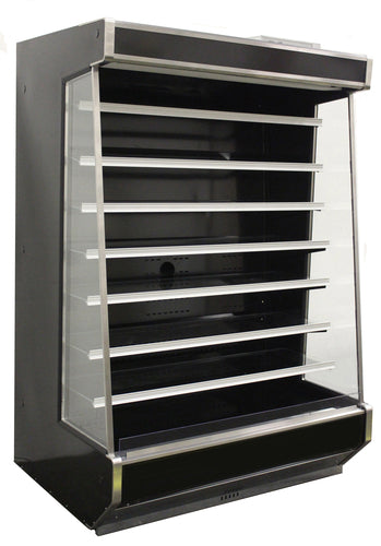 Open Air Merchandiser, designed for remote refrigeration, 73.5"W x 36.1"D x 75.6"H, 40.26 cu. ft. capacity, Tier II NSF, Joinable, Low deck, ECM fan motors, automatic & timer defrost cycles, (14-7 Per Side) adjustable glass shelves, LED interior lighting, digital controls,monitoring capabilities, black interior, black powder coated steel exterior finish, (4) 2" casters, NSF, cETLus, ETL-Sanitation