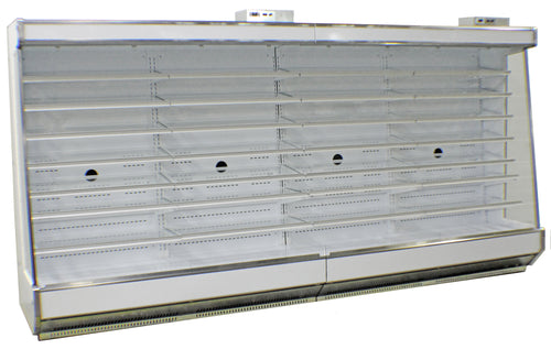Open Air Merchandiser, designed for remote refrigeration, 73.5"W x 36.1"D x 75.6"H, (center only - no side panels), 40.26 cu. ft. capacity, Tier II NSF, Joinable, Low deck, ECM fan motors, automatic & timer defrost cycles, (14-7 Per Side) adjustable glass shelves, LED interior lighting, digital controls,monitoring capabilities, black interior, black powder coated steel exterior finish, (4) 2" casters, NSF, cETLus, ETL-Sanitation