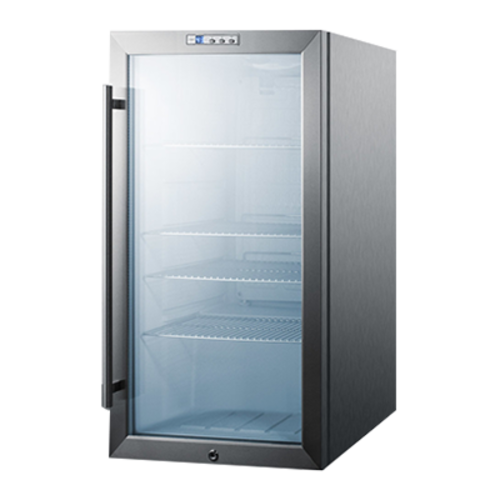 Beverage Merchandiser, reach-in, one-section, 3.3 cu.ft. capacity, built-in or freestanding, automatic defrost, digital thermostat, LED lighting, adjustable shelves, stainless steel exterior, stainess steel trimmed glass door, lock, RHD door swing, 115v/60/1, 1.3 amps, ETL-S (Commercial)