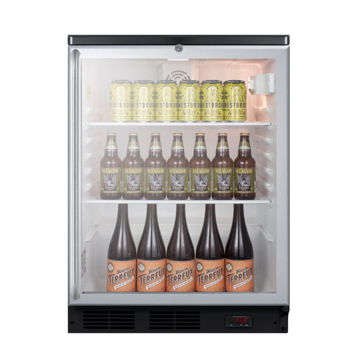 Refrigerated Craft Beer & Wine Merchandiser, reach-in, one-section, built-in or freestanding, 24"W, 5.5 cu. ft. capacity, double pane tempered glass door with aluminum frame, keyed lock & full-length stainless steel towel bar handle, 41° to 65°F temperature range, automatic defrost, interior light, (4) adjustable glass shelves, (1) half-sized wire shelf, adjustable digital thermostat, internal fan, white interior, black exterior finish, R600a Hydrocarbon refrigerant, 115v/60/1-ph, 1.8 amps, cord included, UL, ULC, ETL-Sanitation to NSF-7 (Commercial)