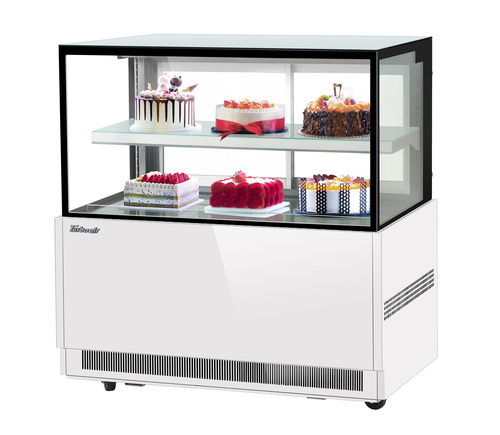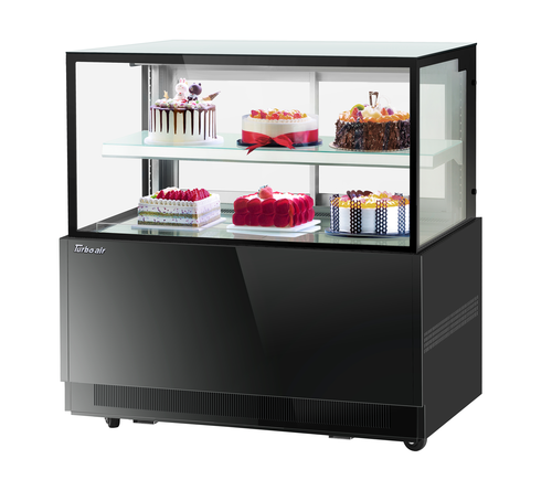 Refrigerated Bakery Display Case, 47-1/4"W x 27-1/2"D x 44"H, 12.4 cu. ft. capacity, self-contained refrigeration with self-cleaning condenser, straight tempered glass front, tempered glass side pannels, sliding rear doors, digital temperature controller, (1) adjustable tempered glass shelf with stainless steel front & back edges, LED interior lighting, stainless steel interior, specify exterior color, 3" swivel casters (rear locking), R290 Hydrocarbon refrigerant, 1/3 HP, 115v/60/1-ph, 6.3 amps, cord with NEMA 5-15P, cETLus, ETL-Sanitation