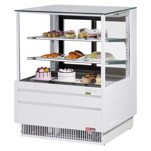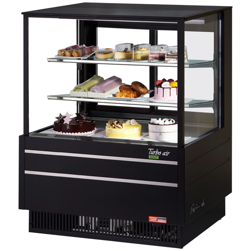 Display Case, refrigerated, full service, 11.8 cu. ft. capacity, 36-1/2"W x 33-1/8"D x 50-3/4"H, self-contained refrigeration with self-cleaning condenser, straight front tempered glass, sliding rear doors, electronic thermostat with defrost control, 33°F - 41°F temperature range, LED interior lighting, (2) adjustable tempered glass shelves, stainless steel floor & air flow grille, specify exterior color, rear access compressor compartment, R290 Hydrocarbon refrigerant, 1/3 HP, 115v/60/1-ph, 7.5 amps, cord with NEMA 5-15P, cETLus, ETL-Sanitation