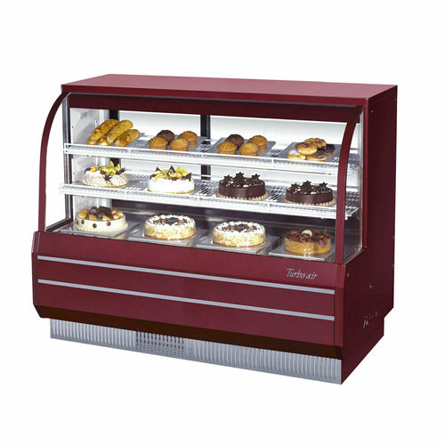 Refrigerated Bakery Display Case 60-1/2"W, 19.4 cu. ft., curved front tempered glass, sliding rear doors, self-cleaning condenser equipped, self-contained refrigeration, (2) adjustable cantilevered wire shelves, safety shielded LED interior lighting, solar powered digital thermometer, digital electronic thermostat with defrost control, stainless steel floor & airflow grille, anti-corrosion coated evaporator, wine exterior color, R290 Hydrocarbon refrigerant, 3/4 HP, 115v/60/1-ph, 8.6 amps, NEMA 5-15P, CSA-Sanitation, cCSAus (contact factory for price)