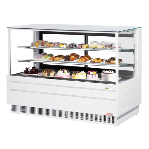 Display Case, refrigerated, full service, 23.2 cu.ft. capacity, 72-1/2"W x 33-1/8"D x 50-3/4"H, self-contained refrigeration with self-cleaning condenser, straight front tempered glass, sliding rear doors, electronic thermostat with defrost control, 33°F - 41°F temperature range, LED interior lighting, (2) adjustable tempered glass shelves, stainless steel floor & air flow grille, specify exterior color, rear access compressor compartment, R290 Hydrocarbon refrigerant, 3/4 HP, 115v/60/1-ph, 8.6 amps, cord with NEMA 5-15P, cETLus, ETL-Sanitation