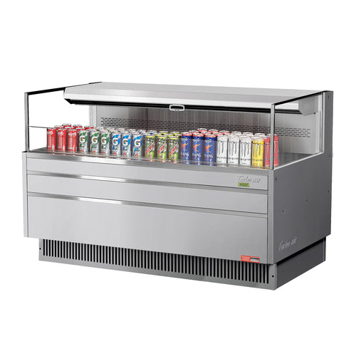 Horizontal Open Display Merchandiser, low-profile, 8.0 cu. ft. capacity, 58-3/4"W x 33-3/4"D x 37-3/4"H, self-contained refrigeration with self-cleaning condenser, tempered glass front shield & side panels, deck only, digital electronic thermostat with defrost control, solar digital thermometer, LED interior lighting, stainless steel interior & exterior, includes night cover, front air intake & rear air discharge, R290 Hydrocarbon refrigerant, (2) 3/4 HP, 115v/60/1-ph, 15 amps, cord with NEMA 5-20P, cCSAus, CSA-Sanitation