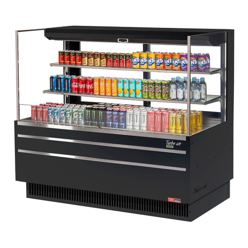 Horizontal Open Display Merchandiser, low-profile, 19.3 cu. ft. capacity, 58-3/4"W x 33-3/4"D x 52-1/2"H, self-contained refrigeration with self-cleaning condenser, rear sliding glass doors, tempered glass front shield & side panels, stainless steel interior, (2) shelves + deck, digital electronic thermostat with defrost control, solar digital thermometer, LED interior lighting, specify exterior color, includes night cover, front air intake & rear air discharge, R290 Hydrocarbon refrigerant, (2) 3/4 HP, 115v/60/1-ph, 15 amps, cord with NEMA 5-20P, CSA-Sanitation, cCSAus