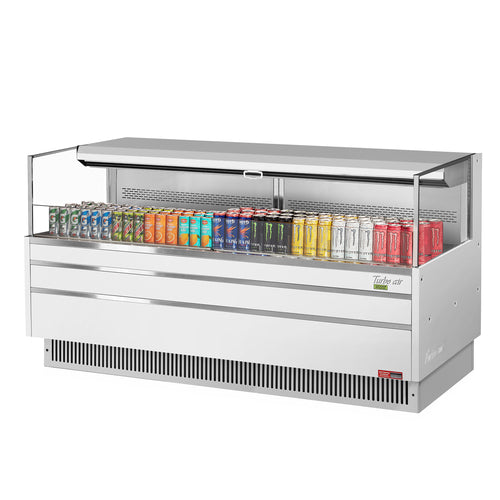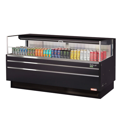 Horizontal Open Display Merchandiser, low-profile, 9.7 cu. ft. capacity, 70-3/4"W x 33"D x 37-3/4"H, self-contained refrigeration with self-cleaning condenser, tempered glass front shield & side panels, stainless steel interior, deck only, digital electronic thermostat with defrost control, solar digital thermometer, LED interior lighting, specify exterior color, includes night cover, front air intake & rear air discharge, R290 Hydrocarbon refrigerant, (4) 3/4 HP, 220v/60/1-ph, 13 amps, cord with NEMA 6-20P, CSA-Sanitation, cCSAus
