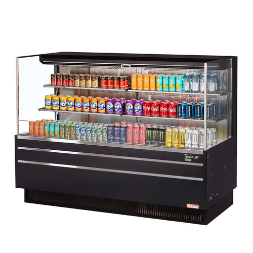 Horizontal Open Display Merchandiser, low-profile, 23.4 cu. ft. capacity, 70-3/4"W x 33"D x 52-1/2"H, self-contained refrigeration with self-cleaning condenser, tempered glass front shield & side panels, stainless steel interior, (2) tiers with (4) glass shelves + solid stainless steel deck, digital electronic thermostat with defrost control, solar digital thermometer, LED interior lighting, specify exterior color, includes night cover, front air intake & rear air discharge, R290 Hydrocarbon refrigerant, (4) 3/4 HP, 220v/60/1-ph, 13 amps, cord with NEMA 6-20P, CSA-Sanitation, cCSAus
