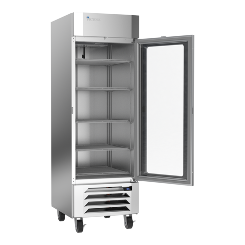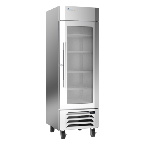 UltaSpec™ Series Merchandiser Freezer, Reach-in, one-section, self-contained refrigeration, 22.5 cu. ft. capacity, (1) full height hinged glass door, (5) epoxy coated shelves, stainless steel exterior, aluminum interior, standard depth cabinet, electronic LED lighting, expansion valve technology, Magnetic door gasket with 2 year warranty, stainless steel breakers, bottom mounted compressor, 3/4 HP, cULus, UL EPH Classified, UL-Sanitation, MADE IN USA