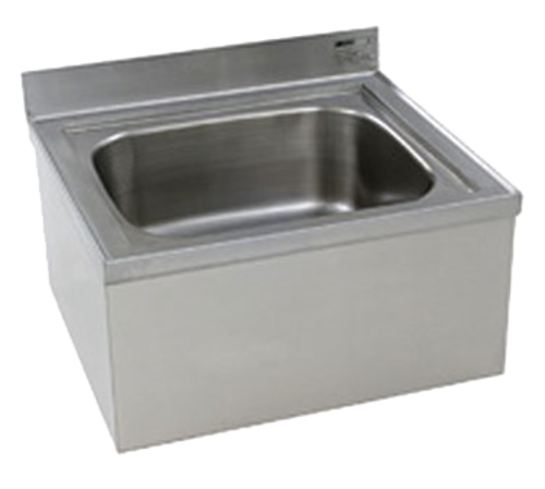 Mop Sink, floor mount, 32-5/8"L x 25-1/2" W x 15-1/2"H overall, 28" wide x 20" front-to-back x 8" deep bowl, 16 gauge top with "V" edge, full skirt, 2" NPS drain with stainless steel removable strainer plate, 304 stainless steel construction, NSF