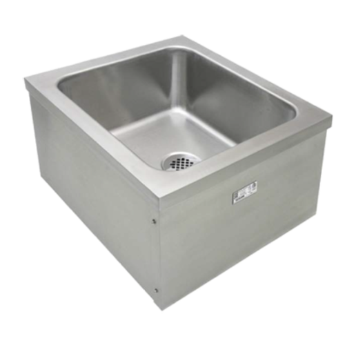 Mop Sink, floor mount, 24"W x 20"D x 14"H overall size, 20" across x 16" back-to-front x 10" deep bowl, includes plastic strainer, stainless steel construction, ETL