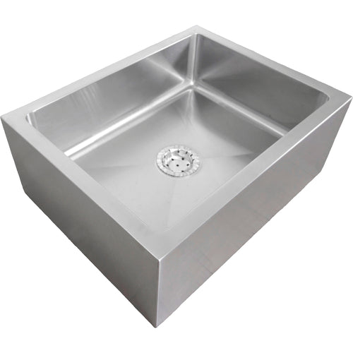 Mop Sink, standard, 24"W x 18"D x 7" deep bowl, 4" OD drain, 16/304 stainless steel, integrated full-height apron welded to sink, coved-corner sink bowl on 1" radius & built-in pitch to 4" waste outlet, fully welded